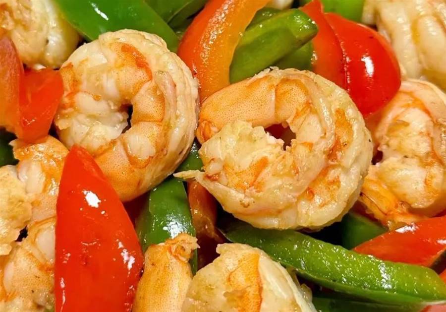 準備食材:蝦仁,青紅菜椒,姜片,蔥段,蒜片。