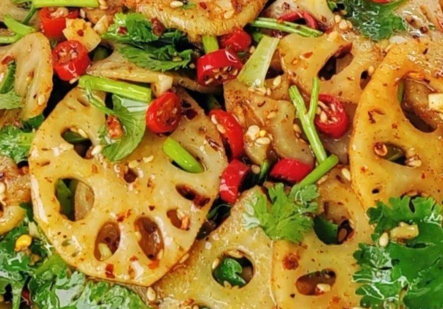 準備食材:蓮藕,小米辣,蒜末,蔥花,香菜,辣椒面,白芝麻。