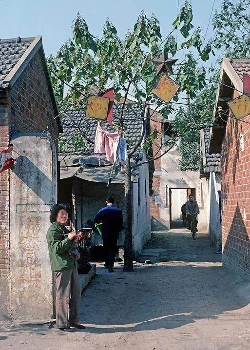 1979年,南京一處居民區。大門口一位婦女倚靠著大門口水泥墻一邊曬著太陽,一邊織著毛衣。鐵制的簡易木樓上,小區的名字斑駁不堪了,仔細辨認,好像是「向陽院」三個字,隨著城市發展,昔日的這個居民區,如今不知道是否還在?