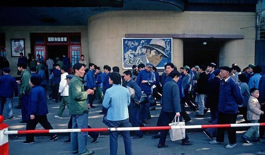 1979年,南京一家電影院前。放眼望去,這里盡是人,當時市民衣服的款式都差不多,衣服的顏色以藍色和綠色最為常見了。那時看電影,不像如今可以網絡訂票,當時各大電影院前排著長隊買票的場景很常見,經常還會出現一票難求。