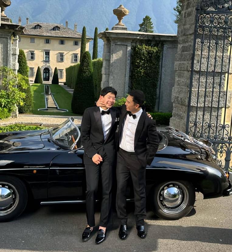 他们一家人在意大利的庄园门口,坐着豪车,住着豪宅,非常惬意。