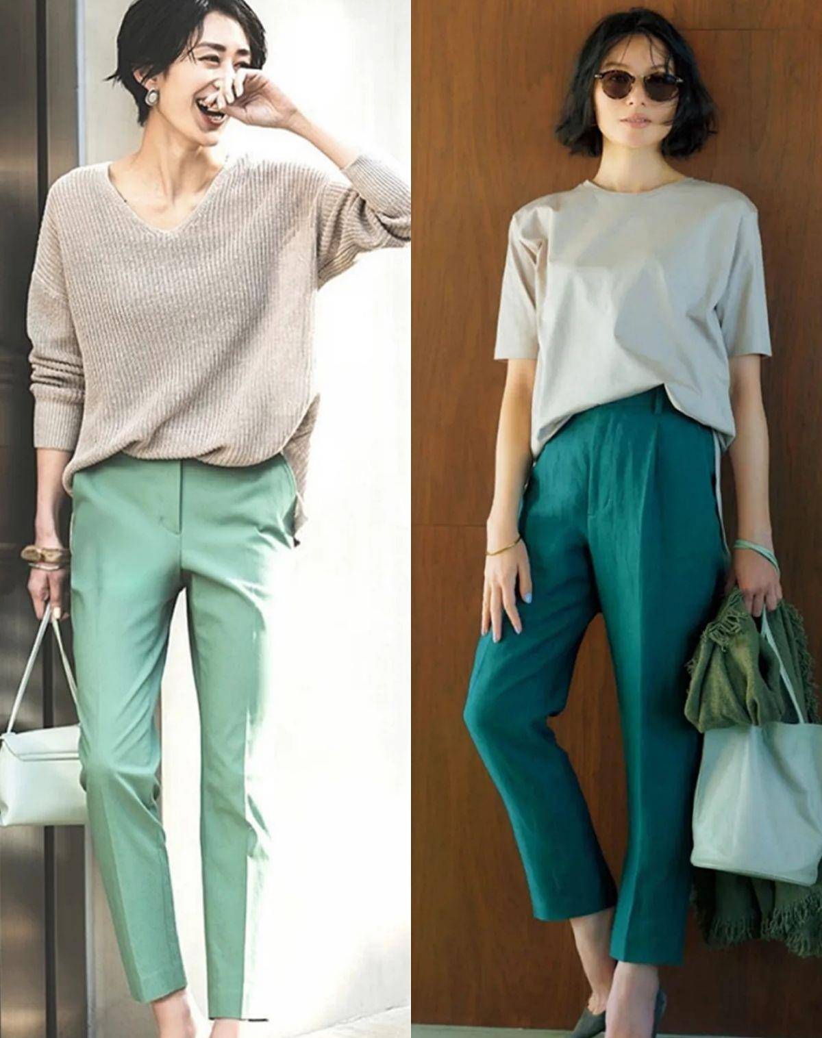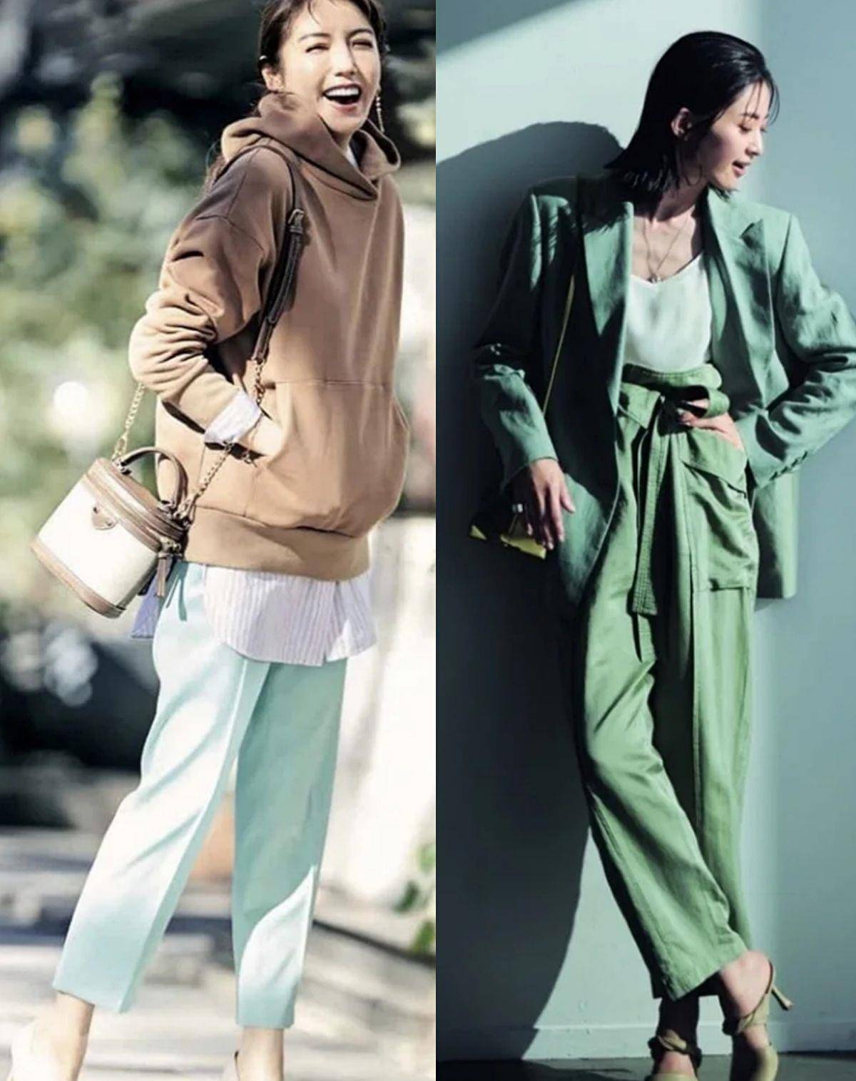 另外,中年女性在用綠色減齡時,可以選擇綠色的褲子、鞋子或包包。這些物體的共同點是距離臉部較遠,相對容易控制。