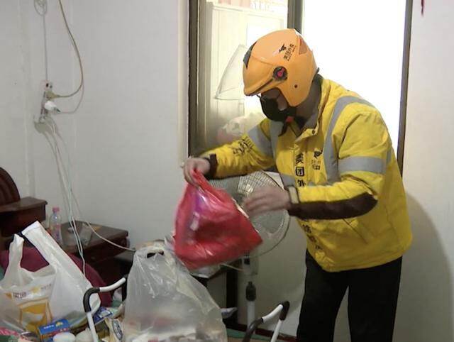大姐几乎每天都会叫外送,谁接到了这一单,就会提前下线,不再接新单,给大姐留出时间,主动帮她把餐送到床前,摆好,等她吃完收拾好,再把垃圾投到社区裡的垃圾分类站。