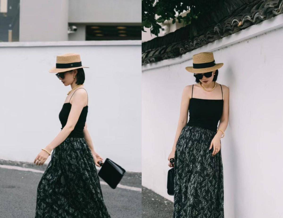 黑色吊帶背心是比較基礎的東西,而且它可以打開大部分頸部空間,可以改變頸部的曲線,讓頸部變得相當纖細修長。