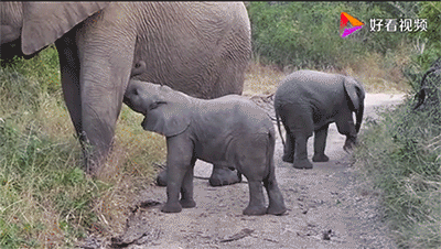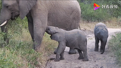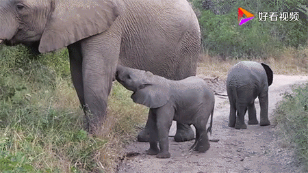 又到了小小象喝奶的时间了,小象也凑了过来,没想到小小象很护食,霸道地顶开了小象哥哥。小象气得哟,用鼻子狠狠地拽下一把路边的野树叶,然后气呼呼地转身走开了。