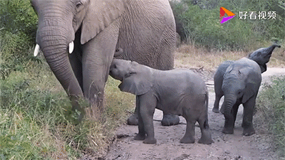 小小象一点都没顾及小象哥哥的感受,还在大口地喝着妈妈的母乳,吨吨吨......