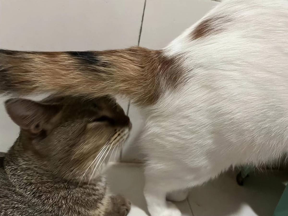 公猫在发情期间对雌猫表现出明显的兴趣和吸引。它们会追逐雌猫,咬颈部或耳朵后面,并进行鼻嗅和舔舐行为。公猫还会尝试踩踏雌猫,这是一种交配姿式的前期行为。
