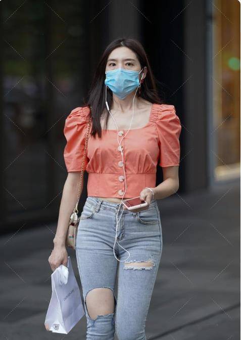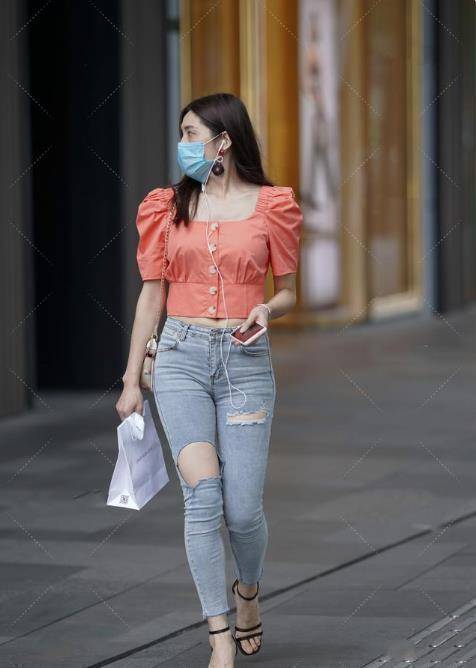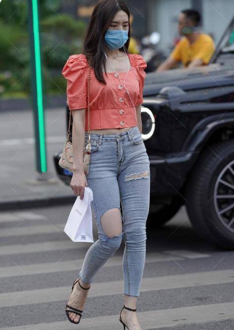 混搭風的破洞褲穿搭其實會更加有個性,像這套衣服不僅在色彩上使用了個性的撞色搭配,而且在風格上也用公主風與街頭風碰撞。出來的視覺效果非常奇妙。個時尚十足。上衣是十分鮮亮的橘紅色,領口袖子都是輕復古的公主風設計,有點在逃公主的意思。大方領很好地凸顯了美麗的鎖骨和頸部的線條。而夸張的泡泡袖設計則是進一步延伸了肩膀的寬松,這樣很容易顯臉小,但是不適合肩寬的女生穿,容易顯得上半身過分魁梧。因為袖子膨脹感很強,所以對頸部短的女生也不太友好。