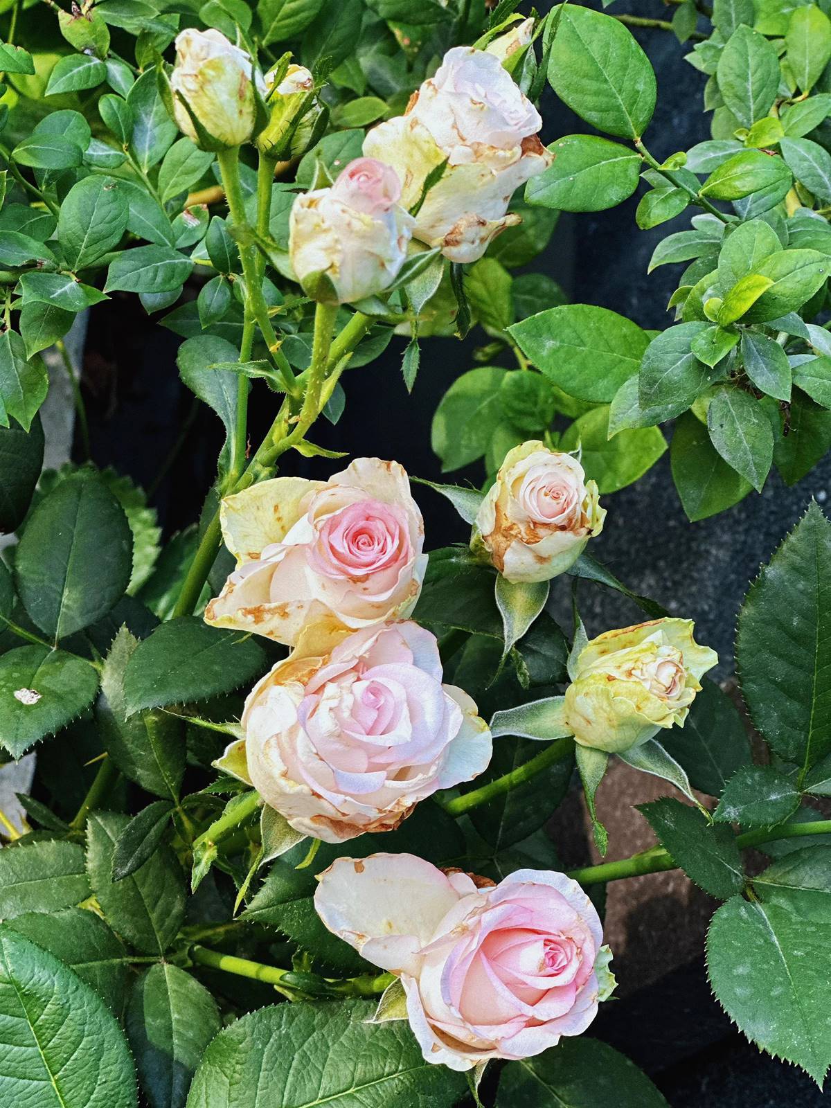 花園里一茬一茬開的,依然是月季,這次爆花多頭的是艾莎,還有草莓杏仁餅。