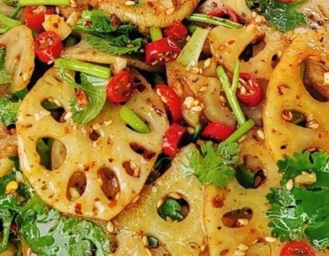準備食材:蓮藕,小米辣,蒜末,蔥花,香菜,辣椒面,白芝麻。