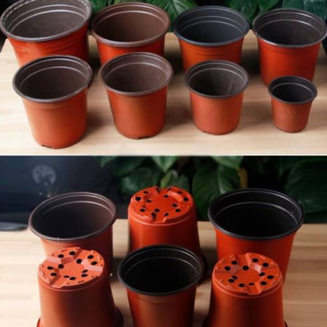 材質不同:加侖盆有抗老化劑,塑料盆多為回收壓制。