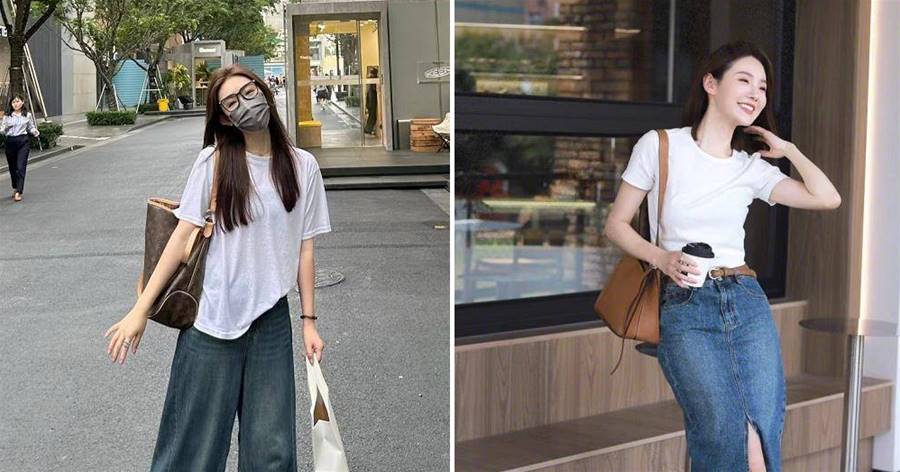 誰不喜歡基本款白T恤?它看起來很簡單,但上才知道它有多好看,干凈又百搭,無論你選擇什麼裙子作為下裝。