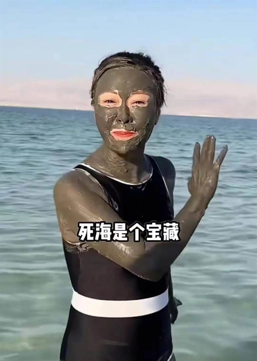 王小騫全身都敷著黑泥,只將眼睛和嘴唇露在了外面,看起來有些滑稽,但擋不住她來到死海的興奮感,大肆夸贊這真是個好地方,這里的海泥對皮膚也很好。