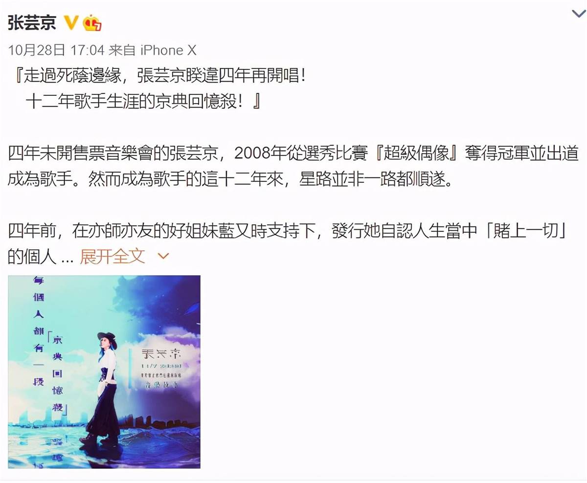 而歌手张芸京的遭遇,恰恰好就证明了这一点。最近37岁的她在自己的社交平台上发文,回顾了自己出道12年的辛酸历程。