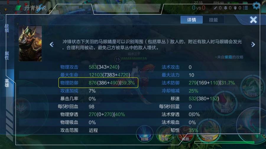 如上圖所示,一共876點物理防御總值,這個也被稱為英雄的總物抗,也就是我們通常說的護甲。