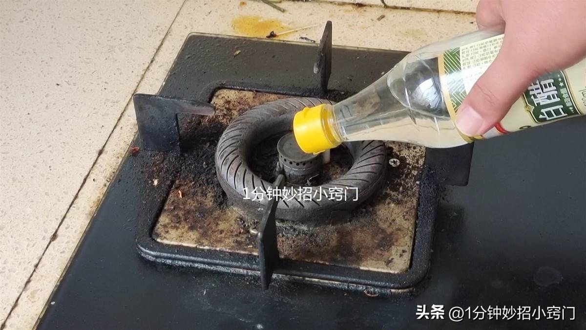 我们把白醋倒在燃气灶台上,利用白醋来帮忙,一起清洁灶台,清洁的效果真是非常不错,下面一起来学一学。