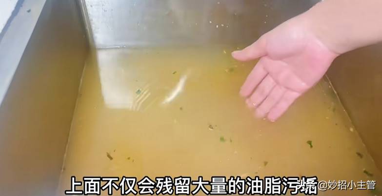 我们可以看到这个洗碗池堵塞了,水质发黄,还飘着很多的食物残渣和油脂,这水看上去营养物质非常丰富,