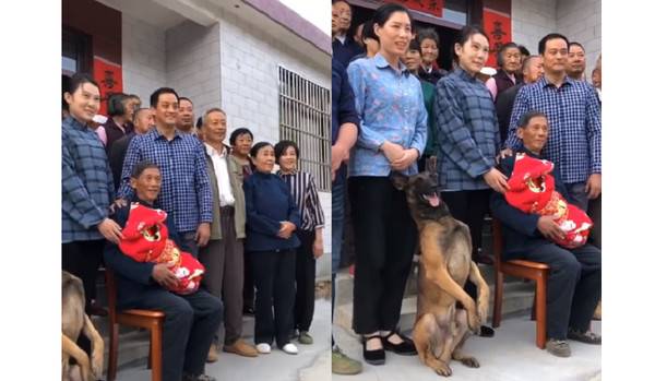 家人不分種族!網路上日前流傳一段溫馨的影片,大陸一戶人家把整個家族召集起來,一起在家門口準備拍大合照,這時飼養的狼犬也走到椅子角落,默默的兩隻腳站起來,露出燦爛笑容想入鏡,可愛的舉動瞬間融化3千多人名網友,爆笑直呼「狗狗也是一家人!」