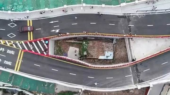 这栋位於中国广东、被车道围绕的平房,虽然大约仅有430平方英尺,但因为当初没有和建商达成协议、屋主说什么都不願意搬走,因此最後建商在规划整个高速高路的设计时,只好退而求其次地在桥中央留一个坑,好在顺利兴建大众运输建设的同时,依旧该住户得以继续生活在原本最熟悉的地方。