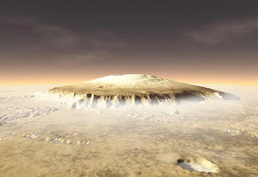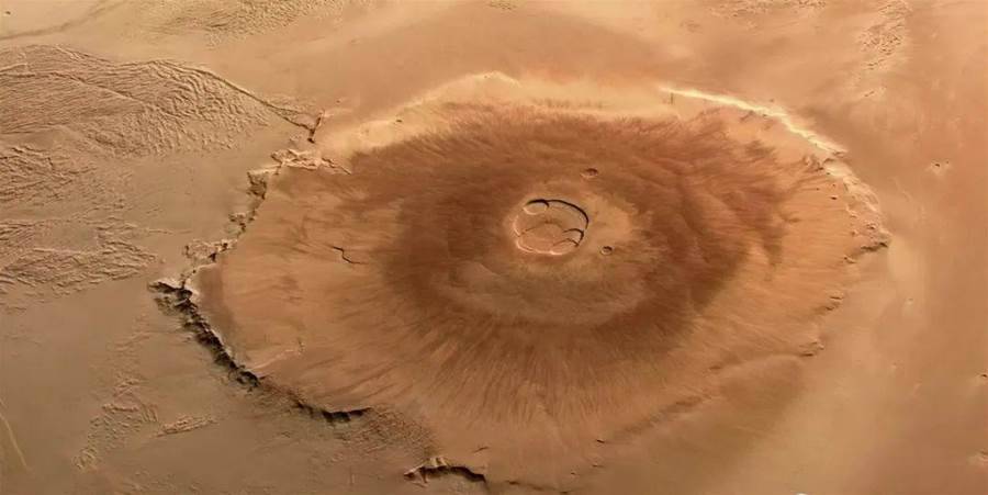 你知道嗎?火星上有一座山,它的高度是地球上任何一座山的兩倍多,這座山就是奧林帕斯山,太陽系中已知的最高最大的火山。