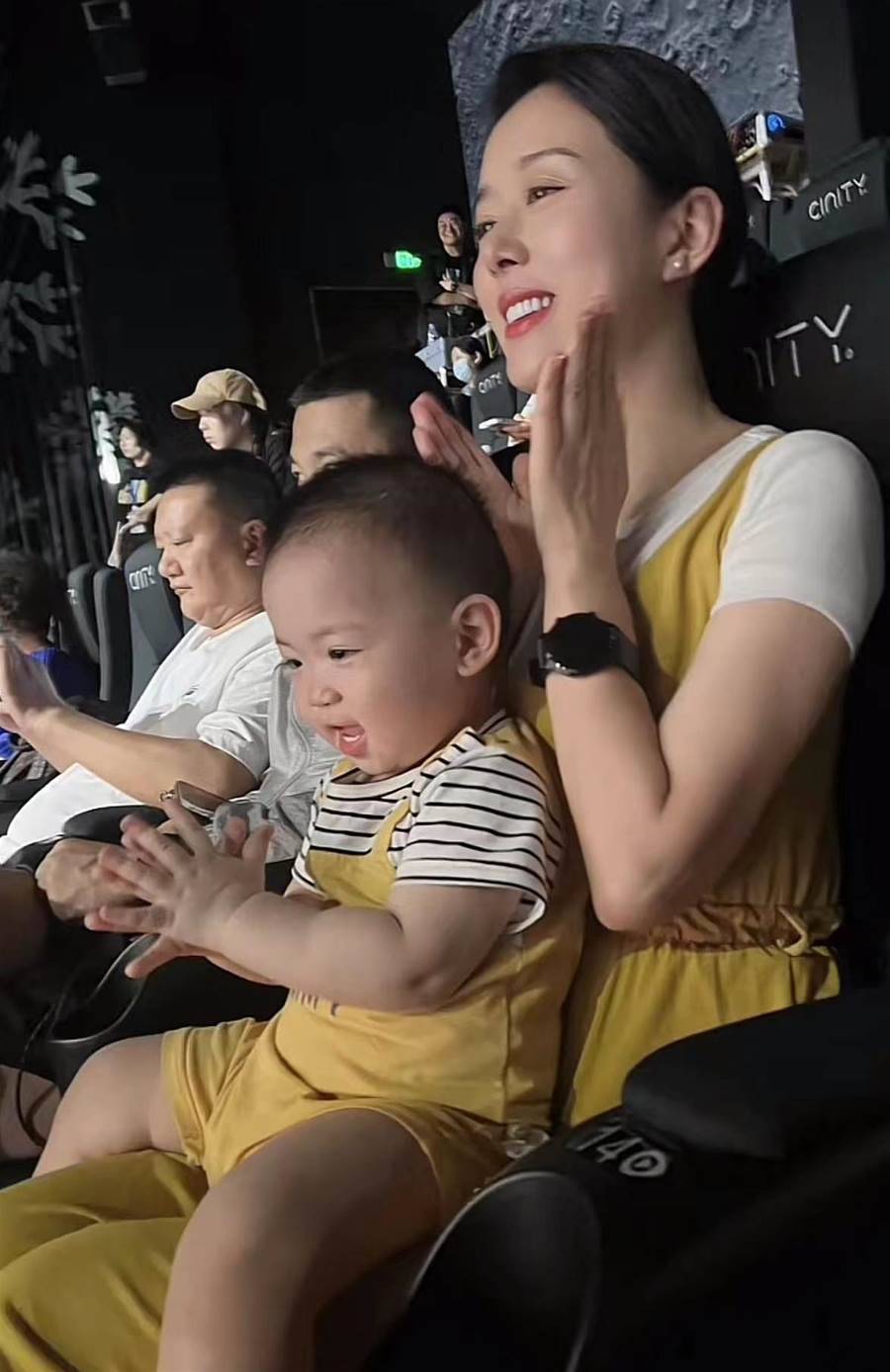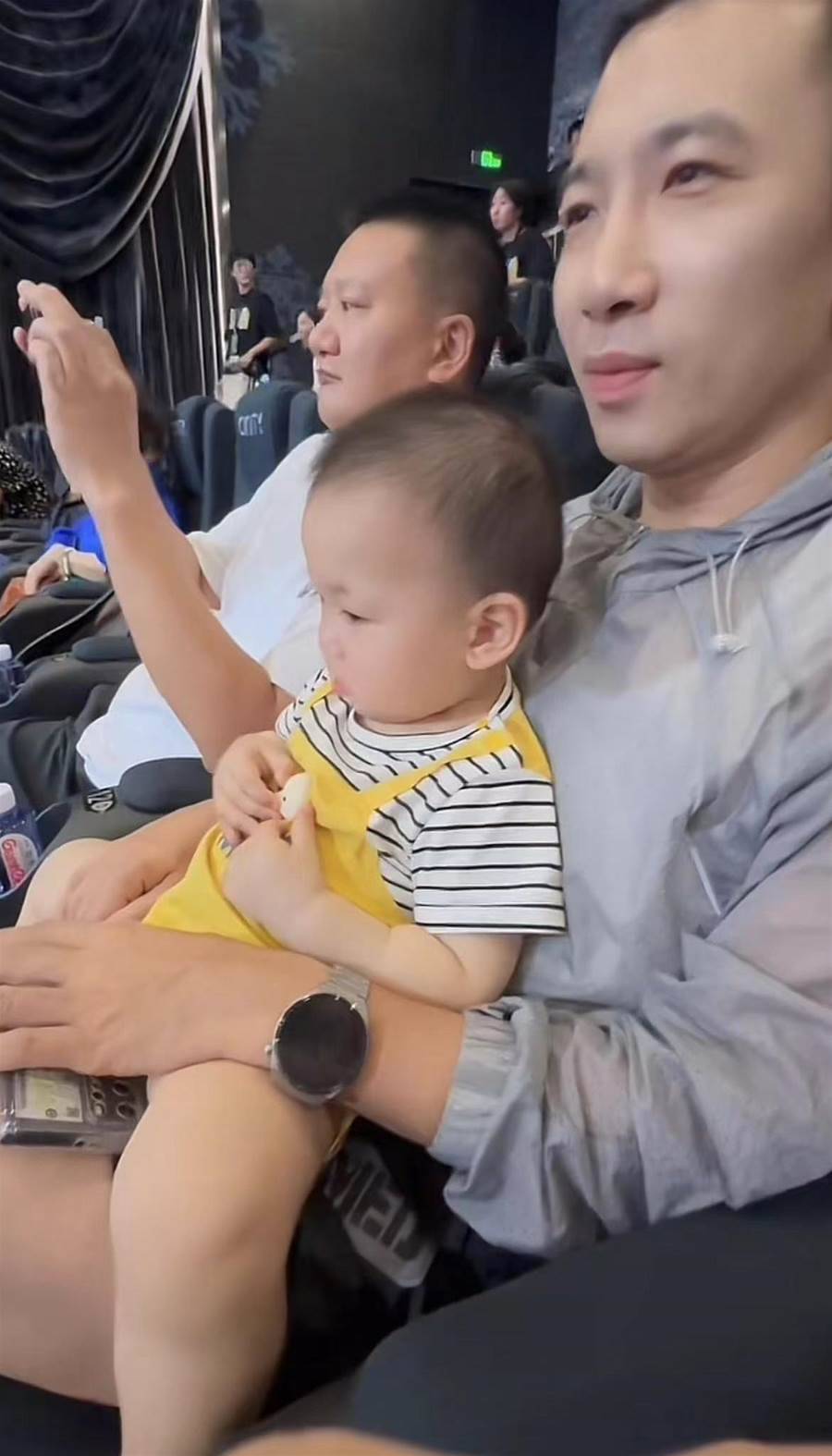 在觀影的過程中,孟浩強全程懷抱著寶寶,擔任起照顧孩子的重任,夫妻倆也愈發的有夫妻相。小寶寶和非常黏爸爸,不哭不鬧,一直認真地看著電影,像個小大人一般。