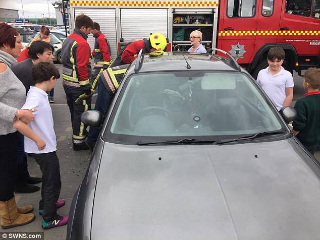 发先儿子被锁在车内的 Kirsty 非常惊慌,求助路人帮忙打了救援电话,5名消防队员才赶了过来。一开始消防队员准备用工具打开车们,但车内的 Brandon 十分活泼,还做到了驾驶座给了消防队员一个灿烂的笑容,一点也不觉得害怕,在场的人看到这可爱的一幕也跟着笑了出来。