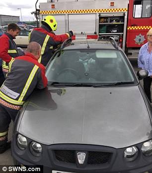 但是不久後,Brandon 开始在把玩硬币,並且往自己的嘴巴裡塞,担心小孩子吞下硬币窒息,消防队员再也不能慢慢来了,他们赶紧砸掉车子後面的玻璃,将宝宝救了出来,Kirsty 以及在场的人都鬆了一口气。