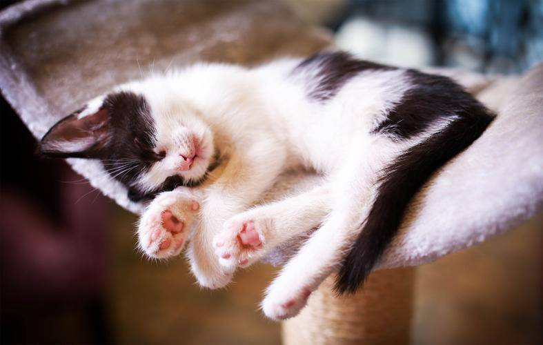 如果你家猫咪睡觉的时候,睡姿总是很放肆,四叉八仰的,那其实是猫咪过得幸福的表现。因为它过得很开心,所以睡觉的时候,总是睡得各种各样,完全不用担心自己被攻击。相信你家猫咪经常这样吧?