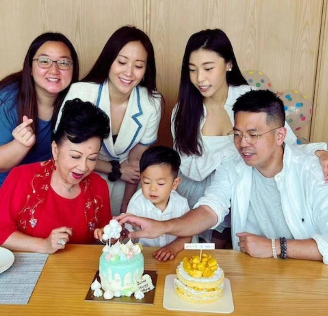 薛家燕曬出了三代同堂的合照,為孫子慶祝生日。合照中除了孫子,還有她的女兒和兒子的家庭。薛家燕穿著喜慶的紅色衣服,特別引人注目。她還給孫子封了一封大利是,并在社交平台上留言送上生日祝福。