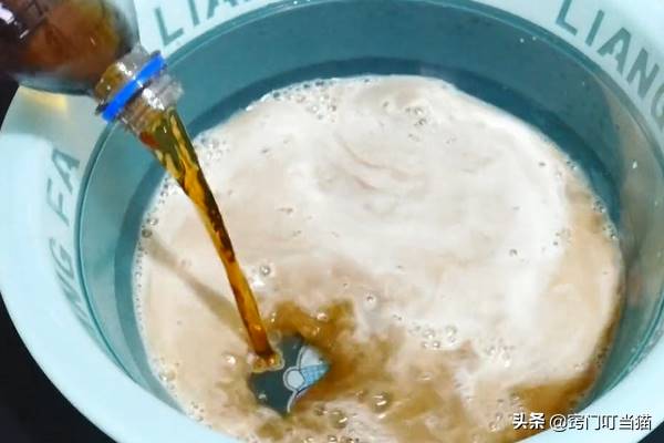 第一步、首先准备一个容器,在容器中依次加入适量的小苏打,再滴入少许的洗洁精,如下图所示,再倒入半瓶左右的可乐,平时喝不完的可乐别扔掉了。