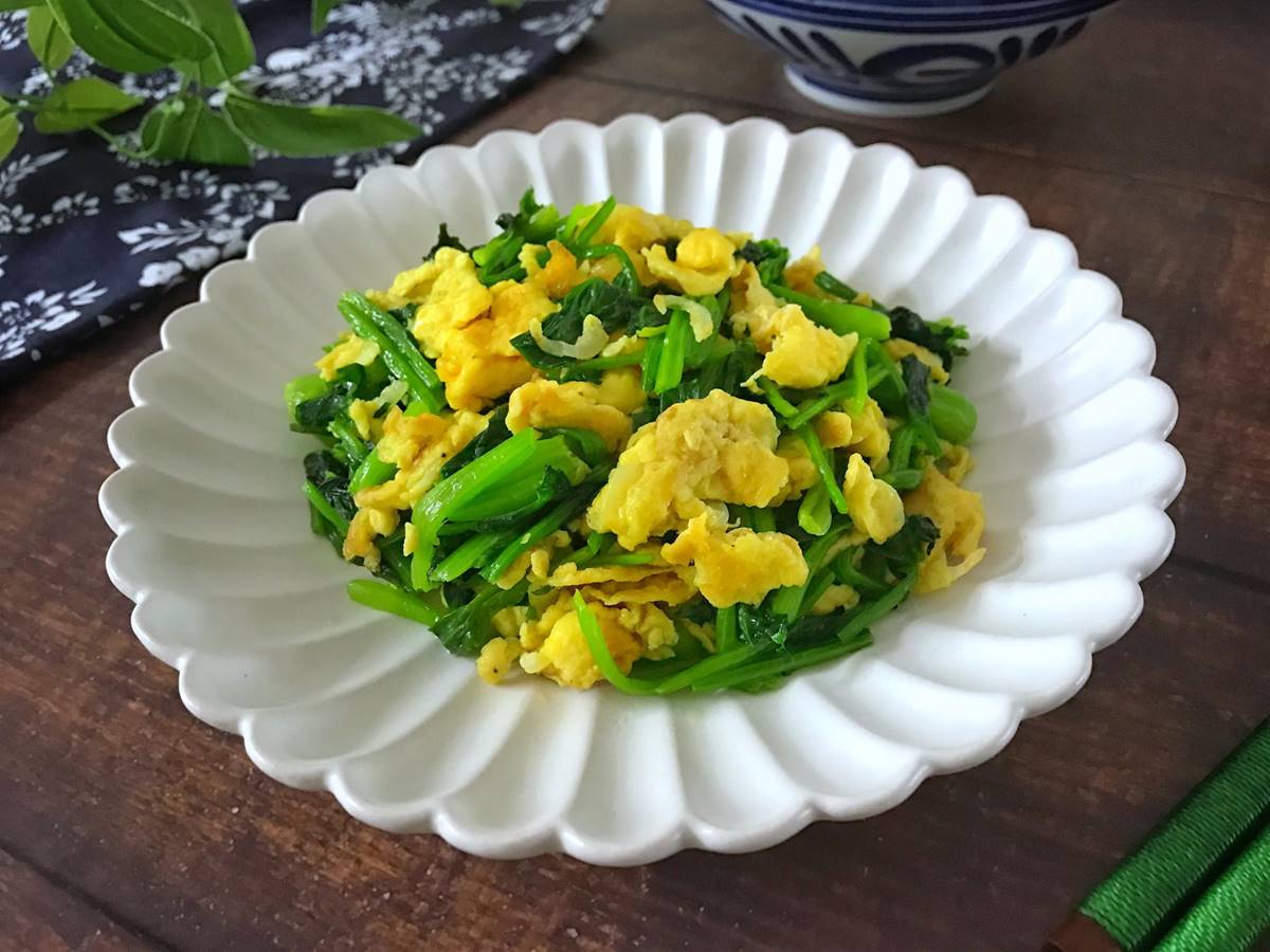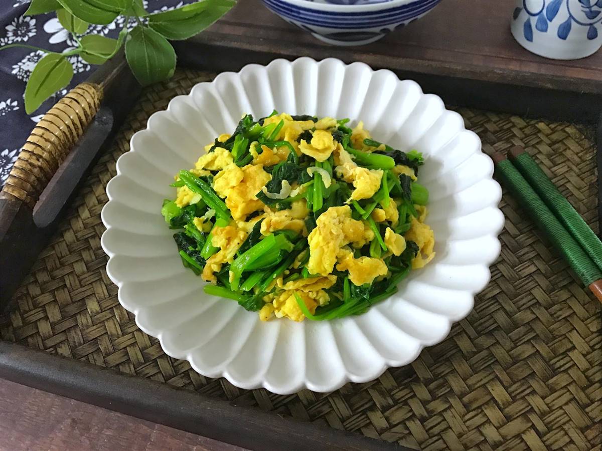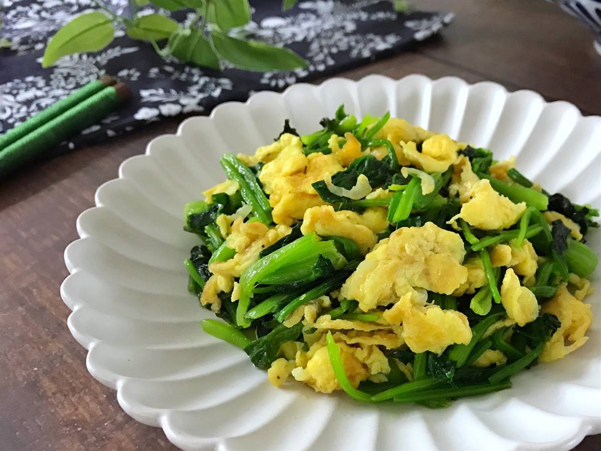 材料:菠菜400克,雞蛋2個,蝦皮15克,鹽適量,料酒少許,油適量