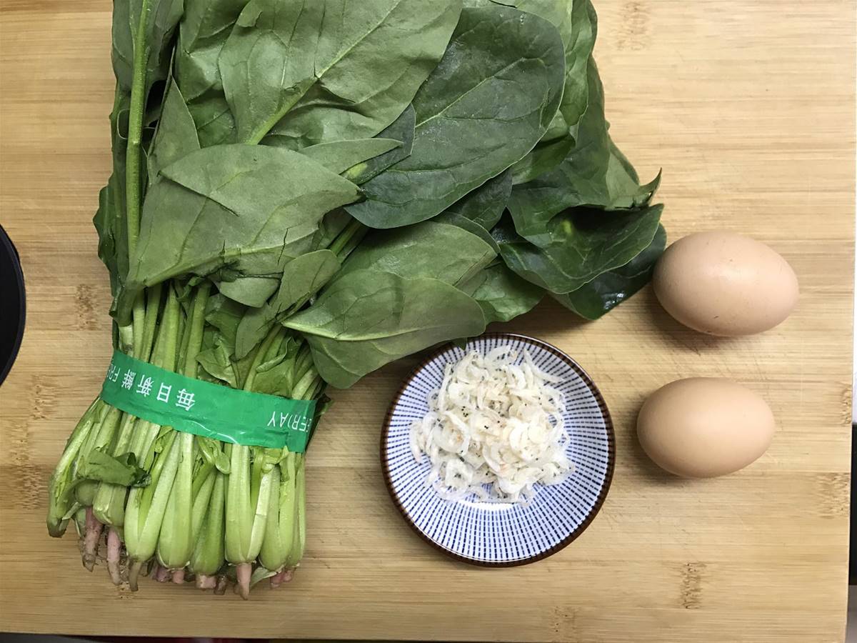 做法:1、準備好材料,菠菜400克,雞蛋2個,蝦皮15克。