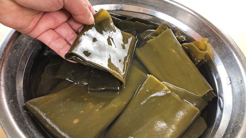 第四步:5分鐘后,將海帶撈出,然后用流水沖洗干凈即可使用了。