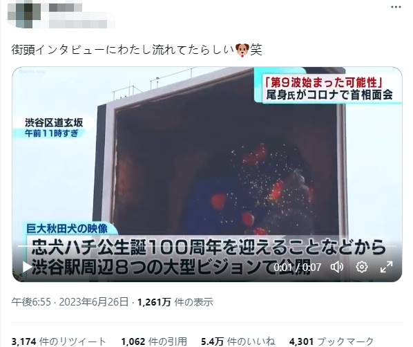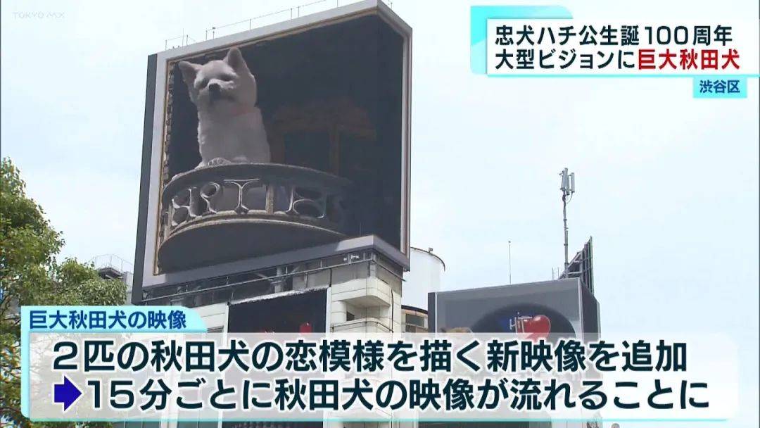 為了紀念忠犬八公誕辰100周年,官方在澀谷站周邊的大型熒幕上公開播放秋田犬的影像。