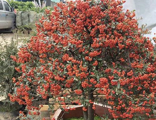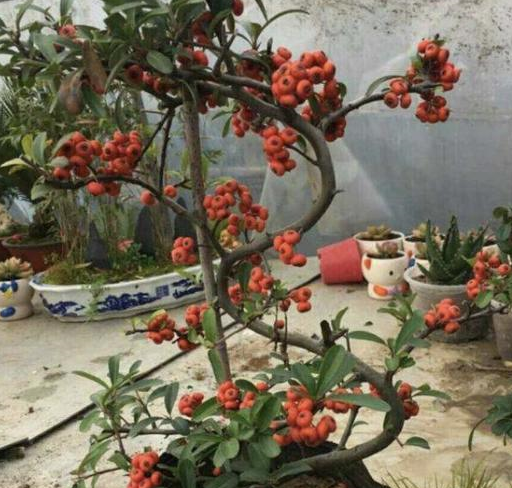 剛才我們所說的「1種果樹」,它的名字叫做火棘,它是一種典型的常綠灌木或小喬木,一些野生的火棘能夠生長到3米高,所以植株還是很高大的,它的繁殖方法一般是扦插繁殖,用壓條法來繁殖也是可以的,在夏天的時候能夠開花,等到秋天的時候能夠結出來「紅果子」,果子在植株上能夠存留很久,所以還是很有觀賞價值的,不知道花友們有沒有見過這種植物呢?