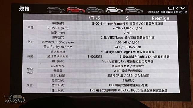 台湾本田今日 (7/19) 选於华山文创园区举办「All-New Honda CR-V 媒体预赏会」,车型编成将採 VTi-S、S 以及 Prestige 等三种,现场更宣布前 1,000 位交车车主另享有专属交车礼。本站前往现场进行实际拍摄,让读者能抢先一览其光彩,该车亦将於今年 8 月正式上市,以全面进化之姿重新进入台湾中型休旅车市场。