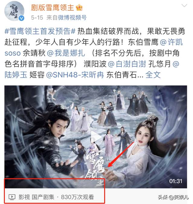 这次在《雪鹰领主》中饰演东伯雪鹰,