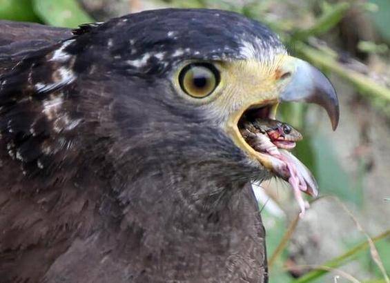蛇雕,顾名思义就是专门以蛇为食,它锋利的爪子和坚硬的喙都会让蛇无处可逃,这只蛇雕又成功的抓到了一条小蛇。