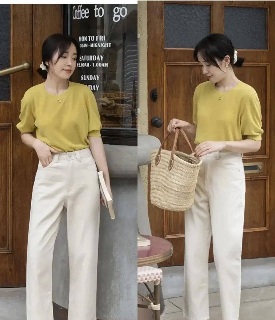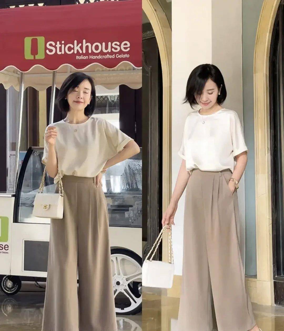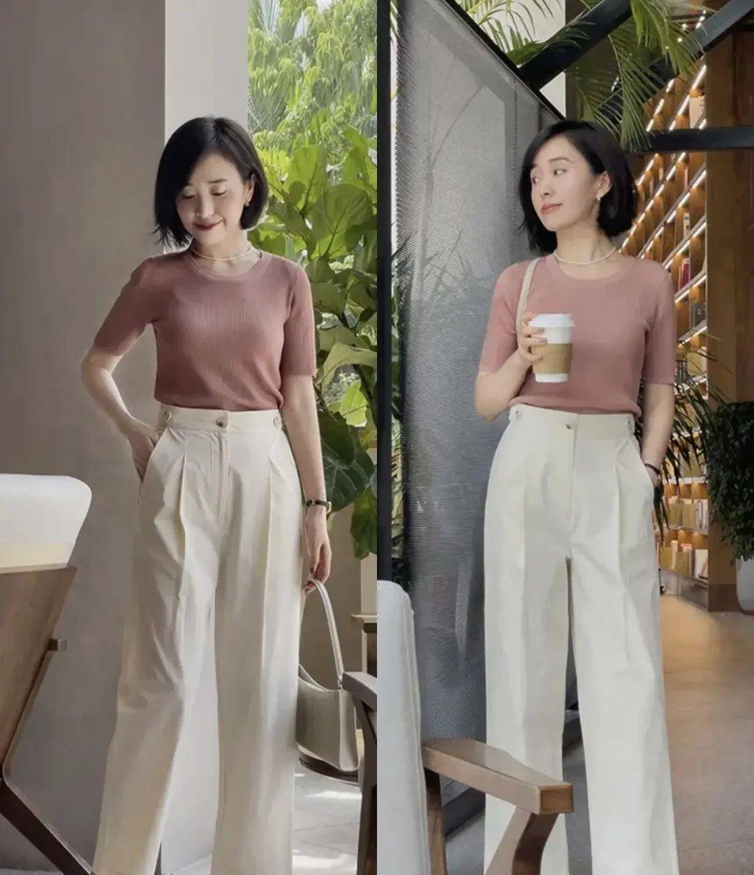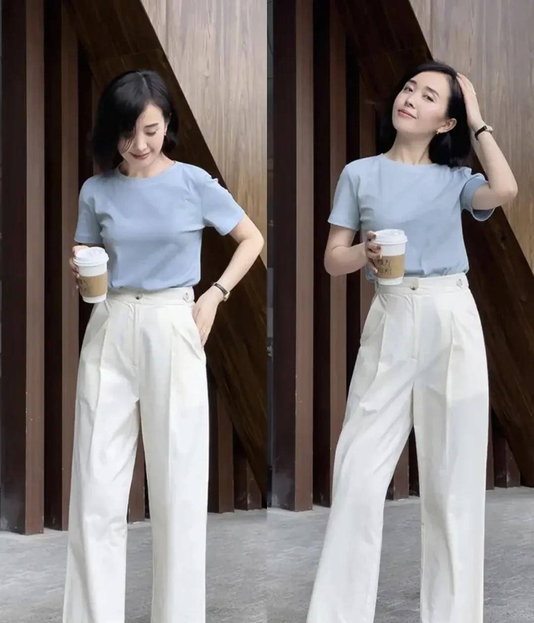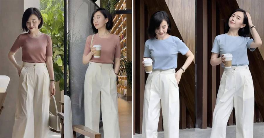 如果你的腿比例勻稱,纖細修長,夏天可以搭配一些淺色的褲子,淺色可以打造出清爽甜美的合身效果。