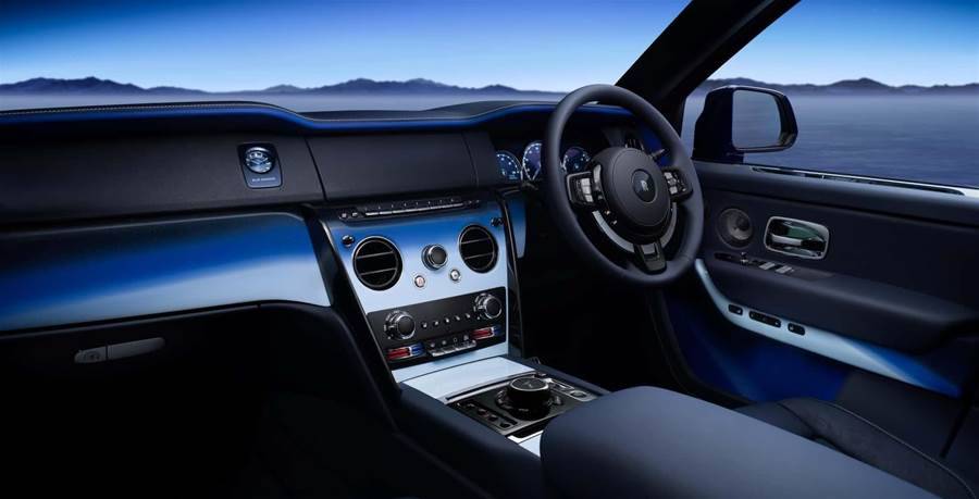 這款限量版系列并沒有像以往那麼浮夸,首先在配色上就給人一種鎮定的視覺效果!全車采用了高定版的Stardust Blue星塵蘭烤漆來重現地球大氣層的顏色。升起的LOGO則以3D打印技術和鈦合金打造并涂上一層薄薄的藍漆,藝術感瞬間爆棚!而這一設計靈感也是來自于卡門線(位于海拔100 km處,被大部分認可為外太空與地球大氣層的界線的分界線),高貴感可以輕松秒殺對手!細節方面,比如標志性的「帕特農神廟格柵」則以緞面烤漆呈現,四只22寸的五輻輪轂使用半透明漆,也同樣會給這款車增添更多的神秘感。