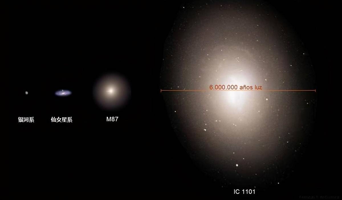 目前已知發現的最大星系是位于阿貝爾2029星系團中,名為IC 1101,它距離地球大約為10.5億光年,其體積異常龐大,僅直徑就長達400萬光年,是銀河系的20倍,最少由100萬億顆恒星組成,如果我們將銀河系與其相比,它可以容納數千個銀河系,科學家發現,IC 1101之所以如此巨大,可能是由多個星系碰撞合并形成,最終才變成了如今的樣貌。