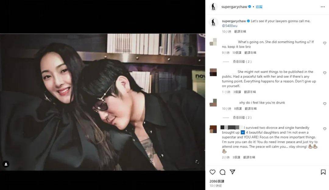 沒多久他繼續暴走發文,貼出多張與前妻吳速玲的合照并寫下,「亂七八糟了……但還是愛她,傻傻的被罵,被笑,被恐嚇,但也傻傻的把爽」、「等著瞧看看你的律師是否會打給我」。