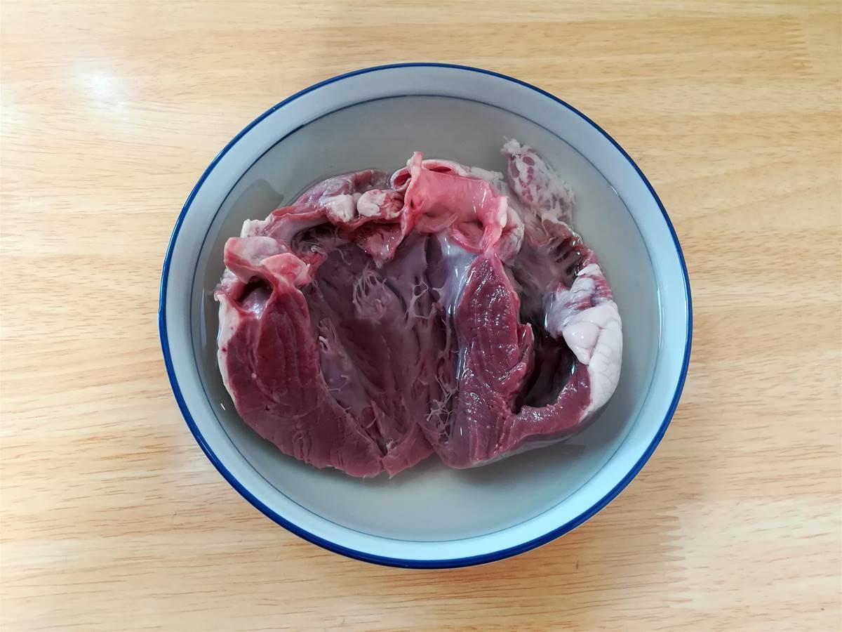 豬心簡單清洗干凈,對半切開,洗掉多余的血水,用水浸泡半個小時。