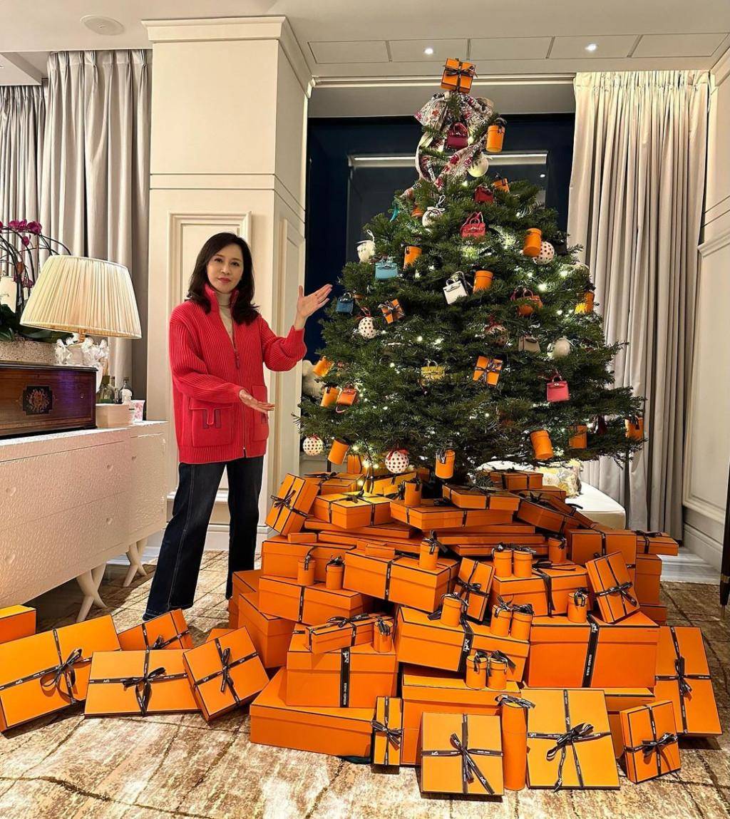 人稱「顧老闆」的顧紀筠是愛馬仕愛好者,她試過IG在貼出一張站在逾2米高的圣誕樹旁邊,而樹下則有至少過百個Hermès紙盒的相片,成為網上佳話,令不少女士羨慕又妒忌!