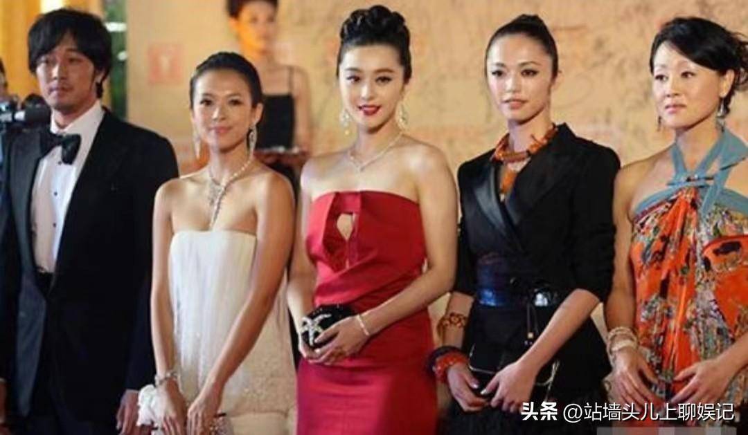 这一张合照有种“鹤立鸡群”的感觉,一旁的电影脸“国际章”被衬得又矮又黑,另一边的姚晨被衬得像个“空姐”既视感。