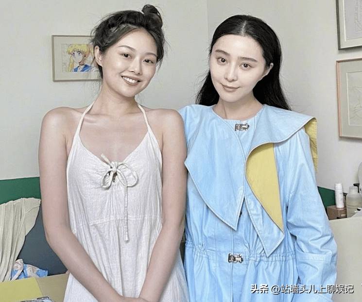 这一张照片里,晚晚凹着造型,一脸精致的妆容,配上专属乱糟糟的发型,有一种独特的魅力,而一旁的冰冰是造型做一半就被拉去合影,简简单单往那一站,便是最吸睛的存在。