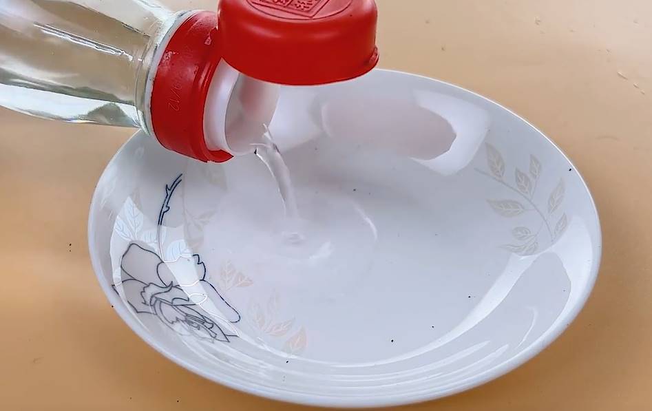 现在把一个小盘子盛满了三个瓶盖的醋,