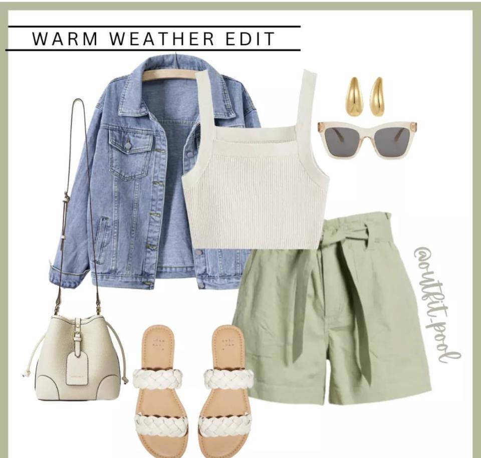 換成白色背心搭配抹茶綠短褲,會顯得更有活力,還可以穿一件小牛仔外套去上班,自然又美。