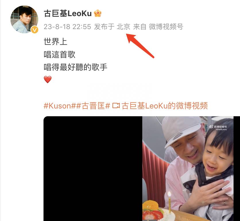 古巨基的發文地址是北京,估計把兒子也一塊兒帶到內地來了。