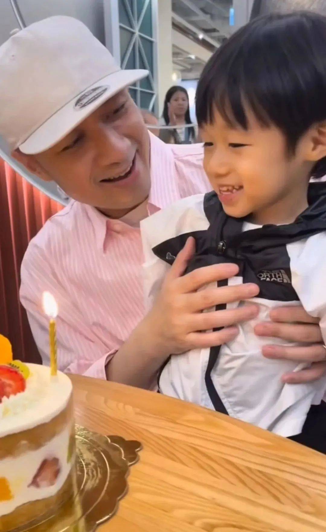 古巨基將兒子抱在懷里,Kuson唱著英文版生日快樂歌,音準很不錯,小奶音萌化了,古巨基陶醉其中。